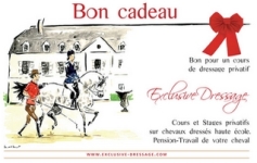 Une idée de cadeaux originale pour faire plaisir à vos proches passionnés de chevaux, qui souhaitent reprendre l’équitation ou progresser en dressage à leur rythme. Vous nous faites parvenir le règlement par chèque et nous vous envoyons par retour le joli Bon Cadeaux, une aquarelle cartonnée et personnalisée. 60 €…